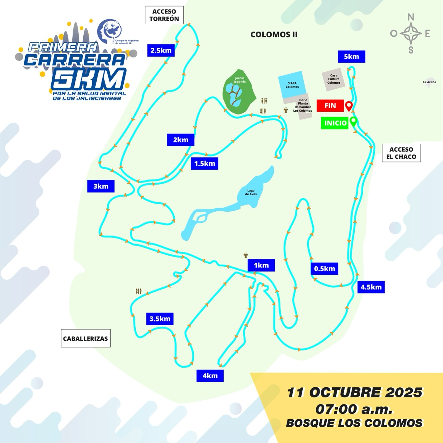 Los invitamos a la Primera Carrera del Colegio de Psiquiatras de Jalisco «Por la Salud Mental de los Jaliscienses » el 11 de Octubre 2025 a las 7am en el Bosque de los Colomos. En Conmemoración al Dia de la Salud Mental.
